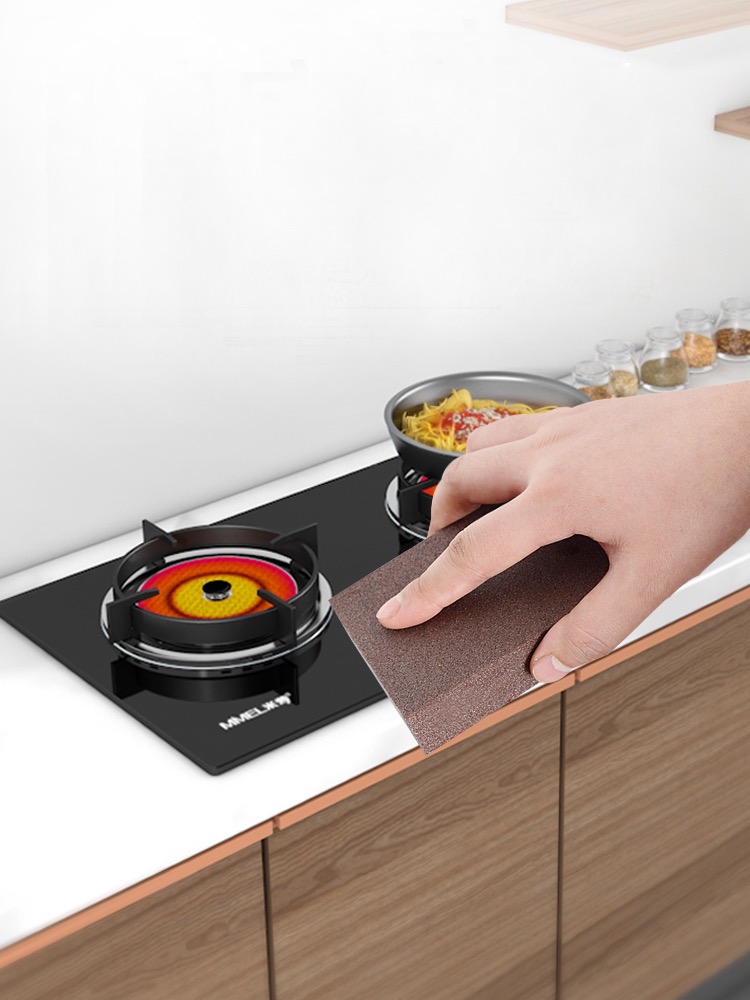 金剛砂納米海綿的外層是金剛砂層,金剛砂是一種常見的研磨材料,硬度很大,僅次于金剛石,將金剛砂顆粒粉碎磨細,包裹在海綿外,特制的微小磨砂粒子專攻鍋外側的燒焦痕跡,鐵銹,砧板,烤箱,天然氣灶臺等頑固污漬,細砂質感細膩,清潔力強,海綿可以吸附水和清潔劑,材質柔軟不傷手,也不會對鍋造成損傷。(相關閱讀:金剛砂納米海綿)
