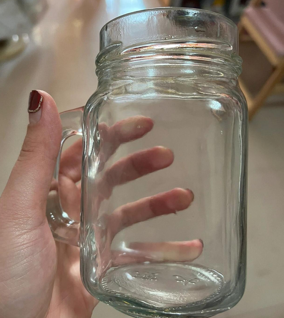 使用納米海綿清潔標簽膠后的杯子